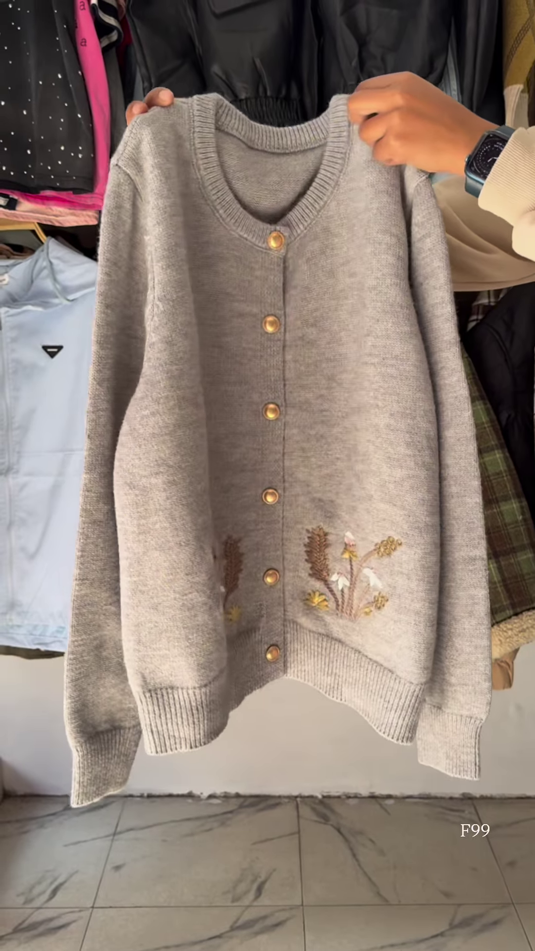 – Ribbed cuffs, hem, and neckline maintaining the cardigan’s shape wear after wear