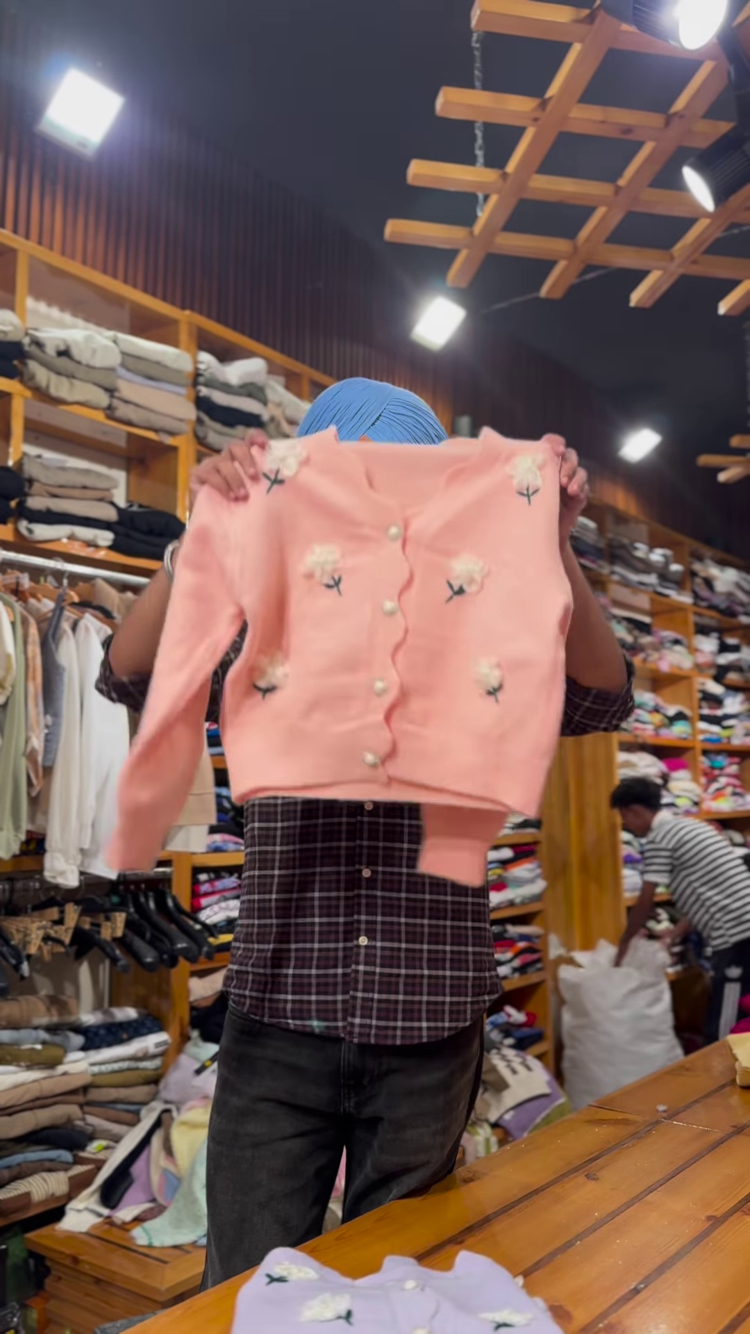 Infuse charm and softness into your catalog with this trio of Floral Embroidered Knit Cardigans. Featuring delicate white floral motifs and pearl-style buttons, these pastel-toned sweaters offer cozy texture and visual elegance. Ideal for folded stacks, rack displays, or bundled knitwear edits. Available in Light PurpleLight Blue, and Pink variants. 🌸✨